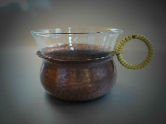 5 x ZINT Teeglas Kupfer Hammerschlag SCHOTT Mainz Glas 50er MID CENTURY