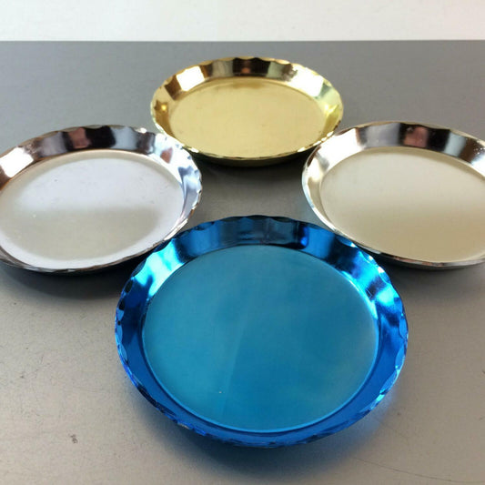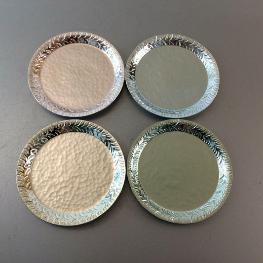 4er Set Untersetzer Gläser 50er 60er Alu Metall Blech 12 cm Teller pastell