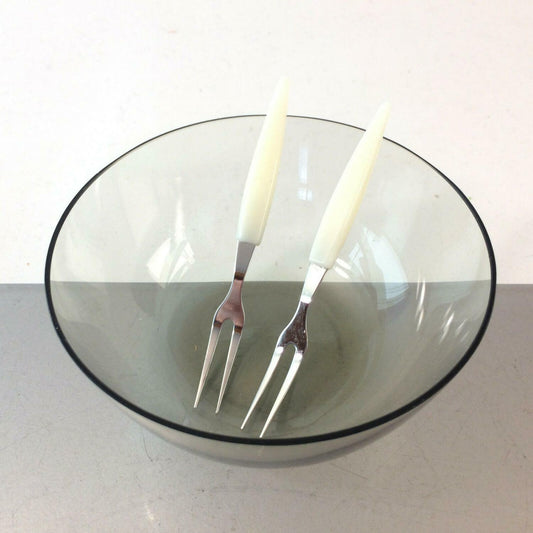 50er 60er Rauchglas Glas Schälchen Schalen MID CENTURY + Gabeln
