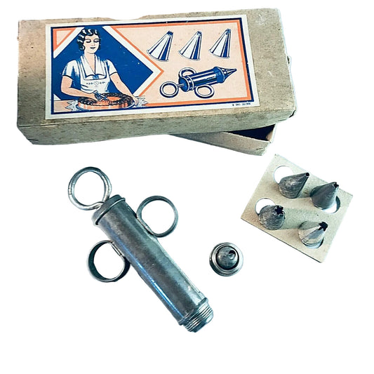 Alte Konditorspritze zum Befüllen Verzieren Dekorieren Metall in OVP 40er