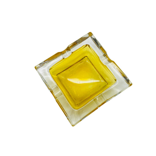 Aschenbecher eckig gelb Vintage 60er 70er Mid Century Dekoration Glas