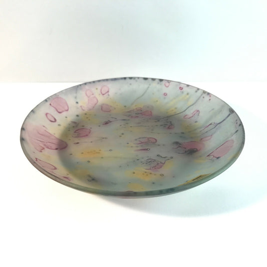 SCHINDLER Israel Studioglas Unikat Teller D 14,7 cm bunt rosa grau