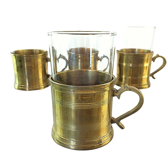 Teegläser Teetassen 4 er Set Messing 50er 60er SCHOTT Mainz Glas Messing