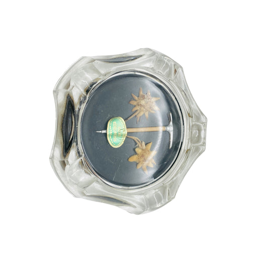 Vintage Aschenbecher Glas mit echten Edelweiss 60er 70er Jahre Ascher