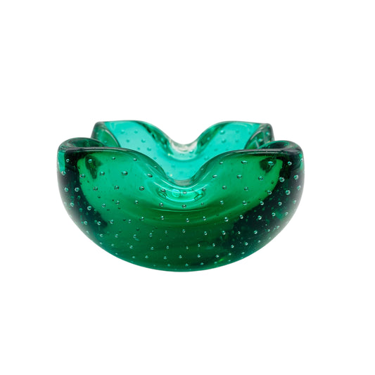 Vintage Aschenbecher grün Glas Lufteinschlüsse Luftblasen Ascher Dekoration 60er 70er