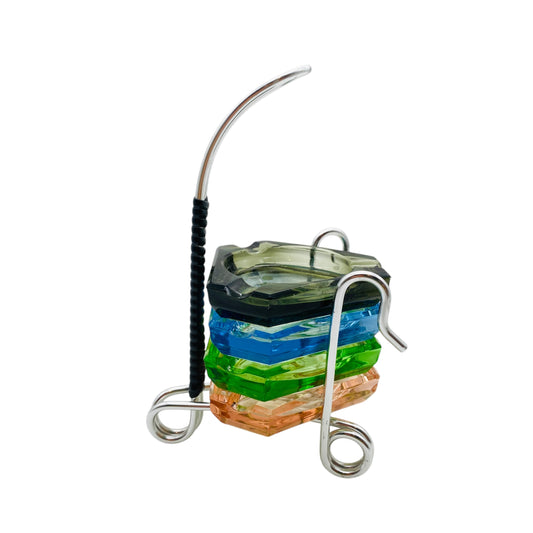 Vintage Stapelascher Glas bunt im Ständer Halter silber Metall 60er 70er Pressglas