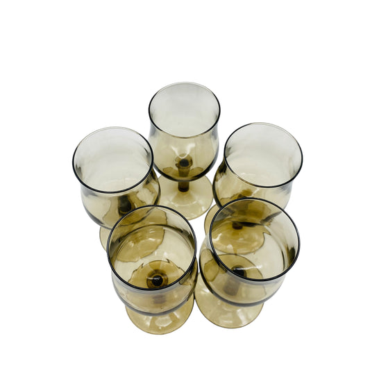 Rauchglas Weingläser aus Frankreich 5er Set bronze braun Gläser Glas 70er 80er