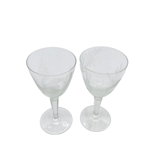 Vintage Likörgläser 2er Set beschliffen mit Tieren Hirsch Fasan 50er 60er Facetten