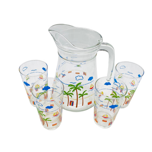 Vintage Saftset Karaffe & Gläser 70er 80er Jahre Strand Palmen Boote