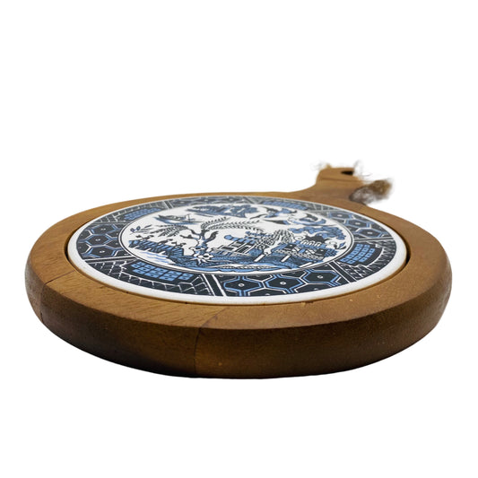 Keramik Untersetzer aus den Philippinen handgefertigt blau Holz 60er