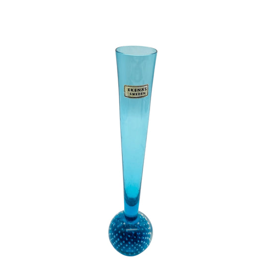 EKENÄS Vase blau Luftblasen Einschlüsse 60er 70er Jahre Glas Schweden