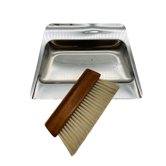 GRASOLI Tischkehrset Schaufen Besen Edelstahl Holz 70er Jahre