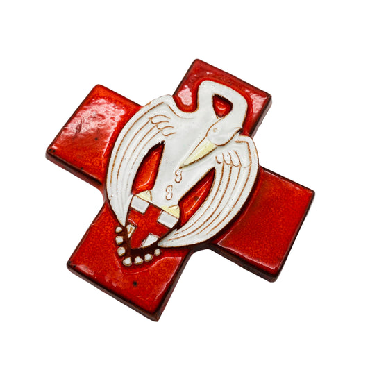 Vintage Keramik Kreuz rot 60er 70er Reiher Vogel Kranich Mid Century