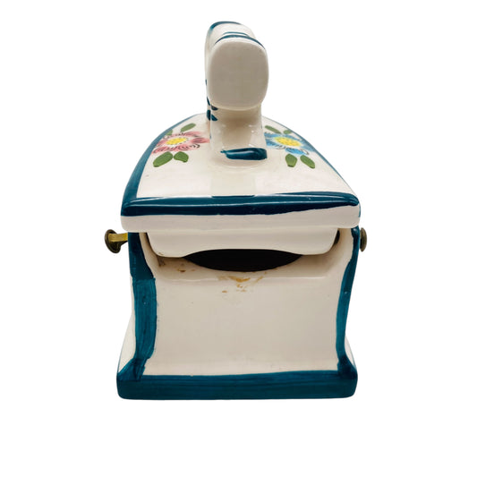 Vintage Keramik Dose Bügeleisen hand bemalt L 11,5 cm Bonbondose