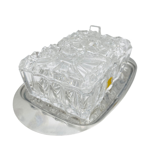BMF Bleikristall Schale Etagere auf Edelstahl Tablett 60er 70er Jahre