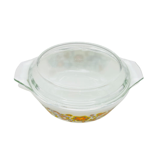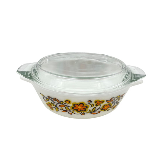 PYREX England Auflaufform Backform Glas weiss mit Deckel 70er Jahre D 16 cm