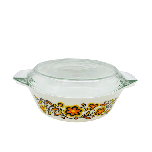 PYREX England Auflaufform Backform Glas weiss mit Deckel 70er Jahre D 22 cm