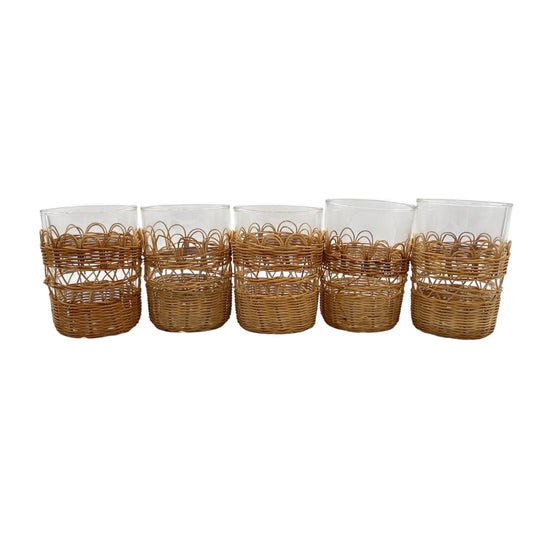 Teegläser im Halter geflochten 50er 60er Jahre 5er Set Vintage Teetassen