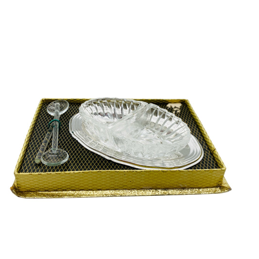 Vintage Menagere mini Tablett Glasschalen Glaslöffel für Süßstoff Salz Kandis 50er 60er