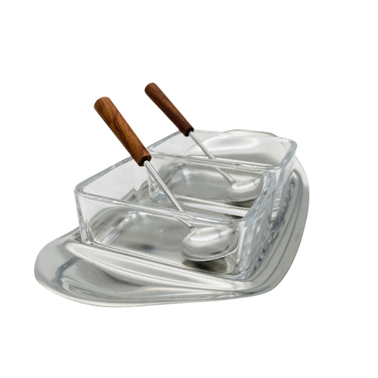 WMF Edelstahl Schale mit Glas Schalen und Löffeln 70er 80er Jahre