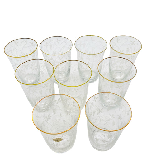 SPIEGELAU Wassergläser 9er Set Vintage 60er Jahre mit Goldrand und Weinrebendekor Glas