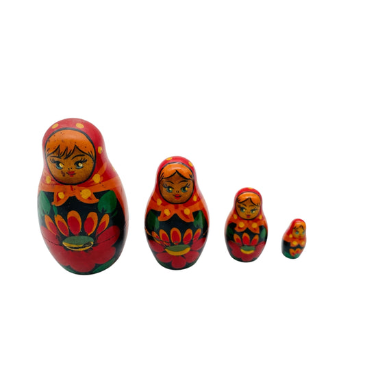 Babuschka aus Holz gedrechselt 4 Puppen Handbemalt rot Blumen Steckpuppe