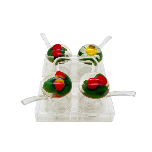 Vintage Menagere aus Acrylglas 70er Jahre für Honig & Marmelade mit Halter