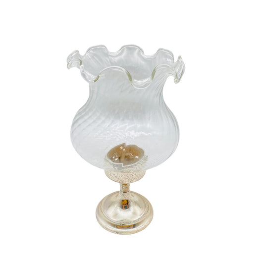 Windlicht für Kerze Glaschirm gedreht 70er 80er Jahre silberner Fuß Halter