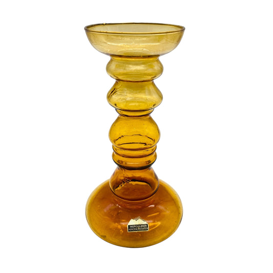 INGRID Glas Kerzenleuchter Vase Bernstein gelb 60er 70er Jahre Vintage Deko