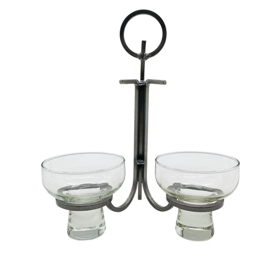 Kerzenständer Glas Eisen Iron 60er 70er Vintage mit 2er Set Glaseinsatz transparent