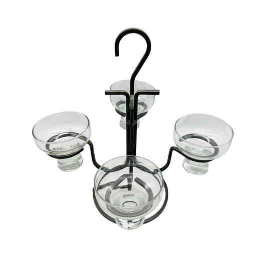 Kerzenständer Glas Eisen Iron 60er 70er Vintage mit 4 Glaseinsätzen transparent Kronleuchter