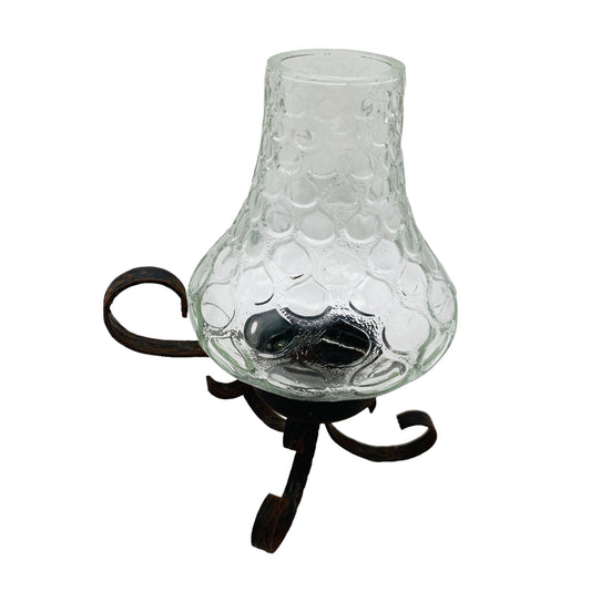 Kerzenständer Glas Eisen Iron 60er 70er Vintage mit Glaseinsatz transparent