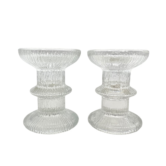 Vintage Kerzenständer Paar transparent Strukturdekor 60er 70er Dekoration Glas