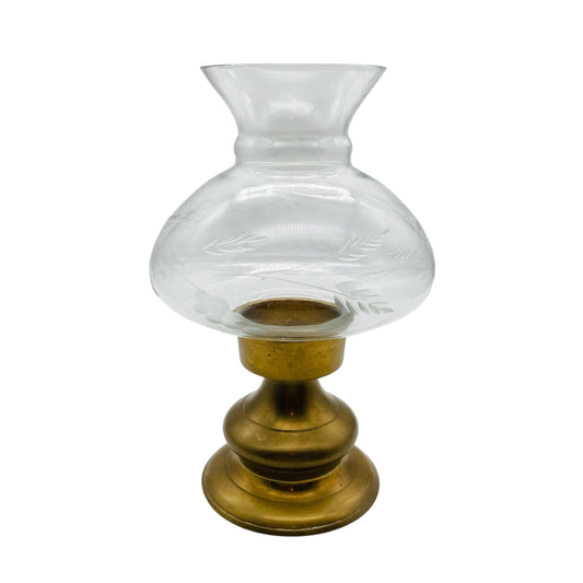 Vintage Windlicht mit Glaschirm beschliffen Messing Fuß Dekoration für den Garten und Balkon