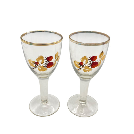 Likörgläser mit Erdbeeren Dekor Vintage 60er 70er Jahre Glas Goldrand Set
