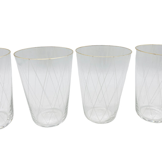 Poschinger Wassergläser 4er Set Goldrand Emaille Dekor Rauten 50er 60er Gläser