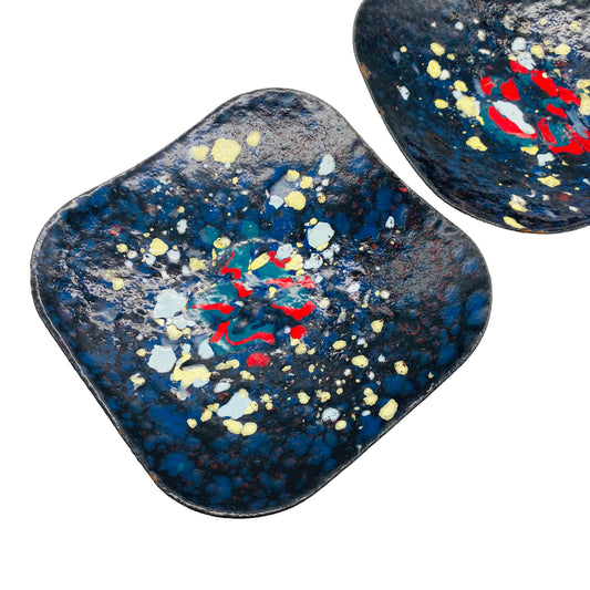 Schalen Set Emaille blau Mid Century 50er 60er mit Punkten