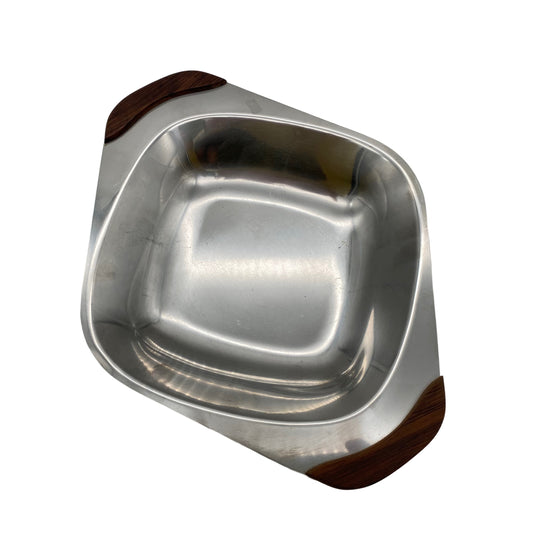 Danish Design Schale Edelstahl Holz 1960er Dänemark 31 cm