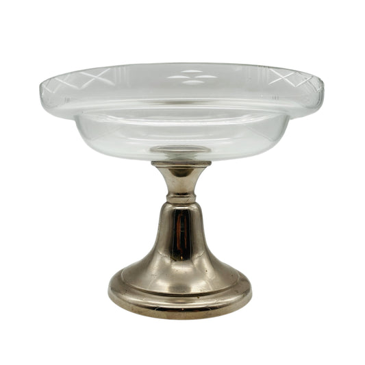Glas Etagere Pokalschale beschliffen Metall silber Schale 50er 60er 70er Jahre Deko