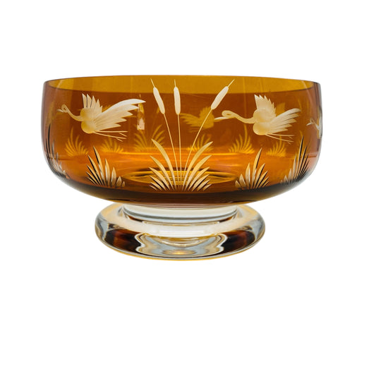 Vintage Schale beschliffen mit Kranichen Bernstein braun 60er 70er Jahre Glas