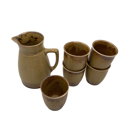 Lilien Porzellan Kanne mit Becher Set braun 60er 70er Jahre