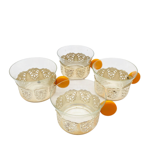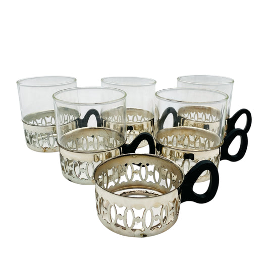 Mid Century Teegläser Bakelit Glas Halter silber 4er Set 50er 60er Jahre Tassen