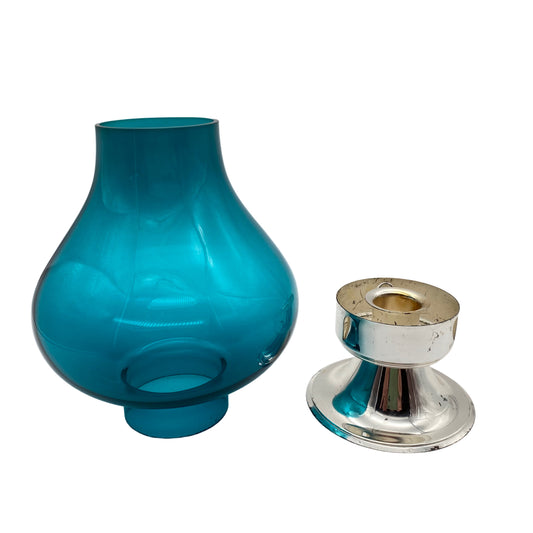 Windlicht Glas türkis versilbert 60er 70er Kerzenständer