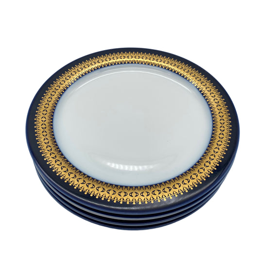 THOMAS Rotunda Kuchenteller 4er Set Goldbordüre blau kobald 70er