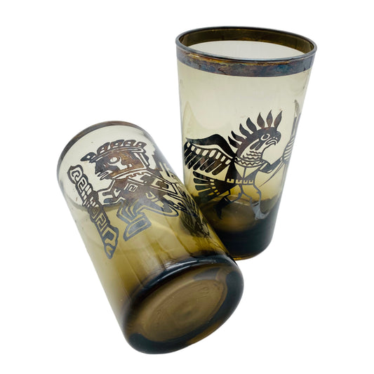 Mid Century Wassergläser Saftgläser Rauchglas 2er Set INKA Maya Dekor 60er