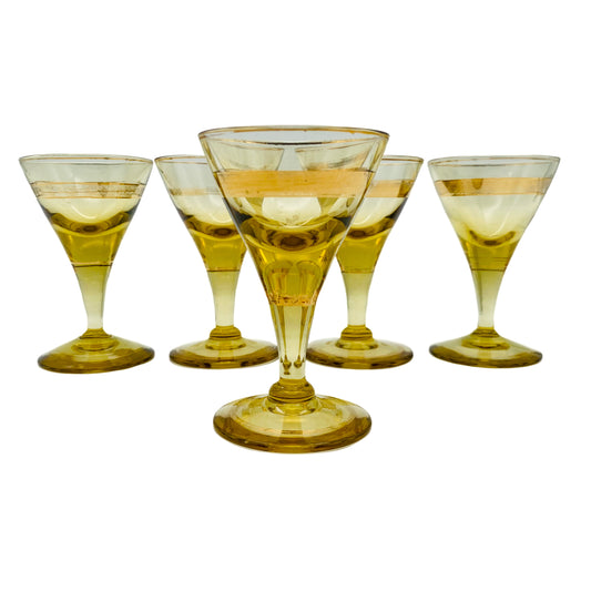 Likörgläser 5er Set Bernstein 50er 60er Jahre Gold Dekor