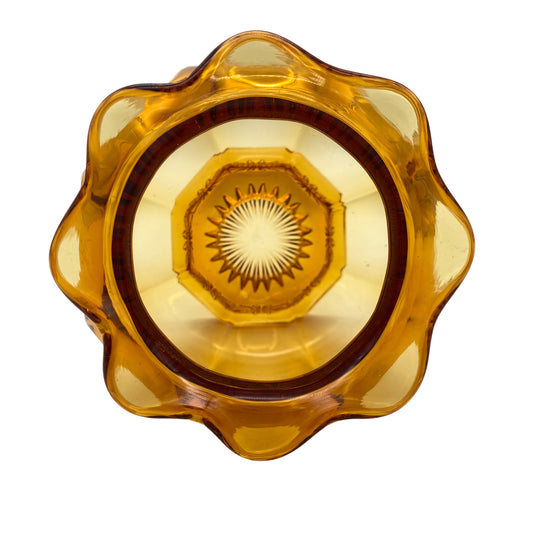 Vintage Vase Glas Bernstein braun gelb 8 eckig 60er 70er Jahre