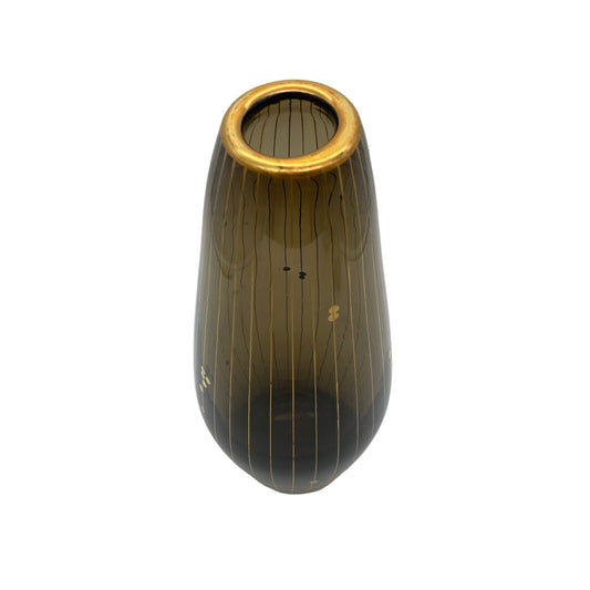 Mid Century Vase Rauchglas Gold Dekor 50er 60er Jahre