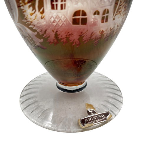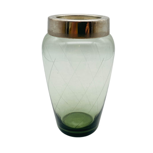 Mid Century Rauchglas Vase beschliffen 50er 60er Jahre