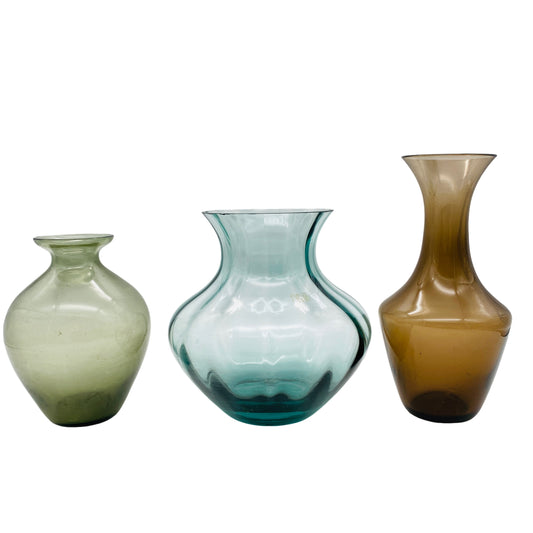 Vasen Sammlung Rauchglas braun blau 50er 60er Mid Century Glas Dekoration